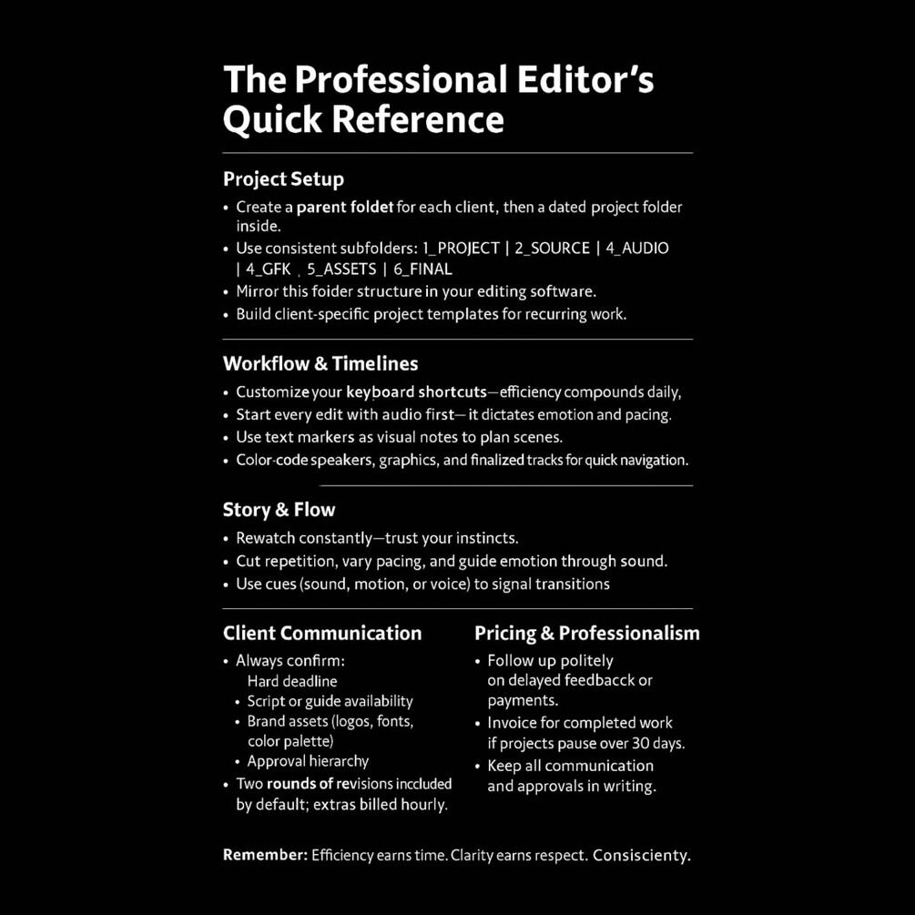 A concise field guide for video editors who want to work smarter, stay organized, and manage clients like a professional.